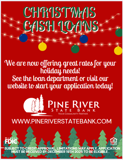 At Pine River State Bank we offer installment or personal loans to serve your needs. Whether you are looking to buy a new or used vehicle, boat, snowmobile, 4-wheeler, vacations, car repairs, etc., our loan officers will work with you to set up a payment schedule that fits your needs.